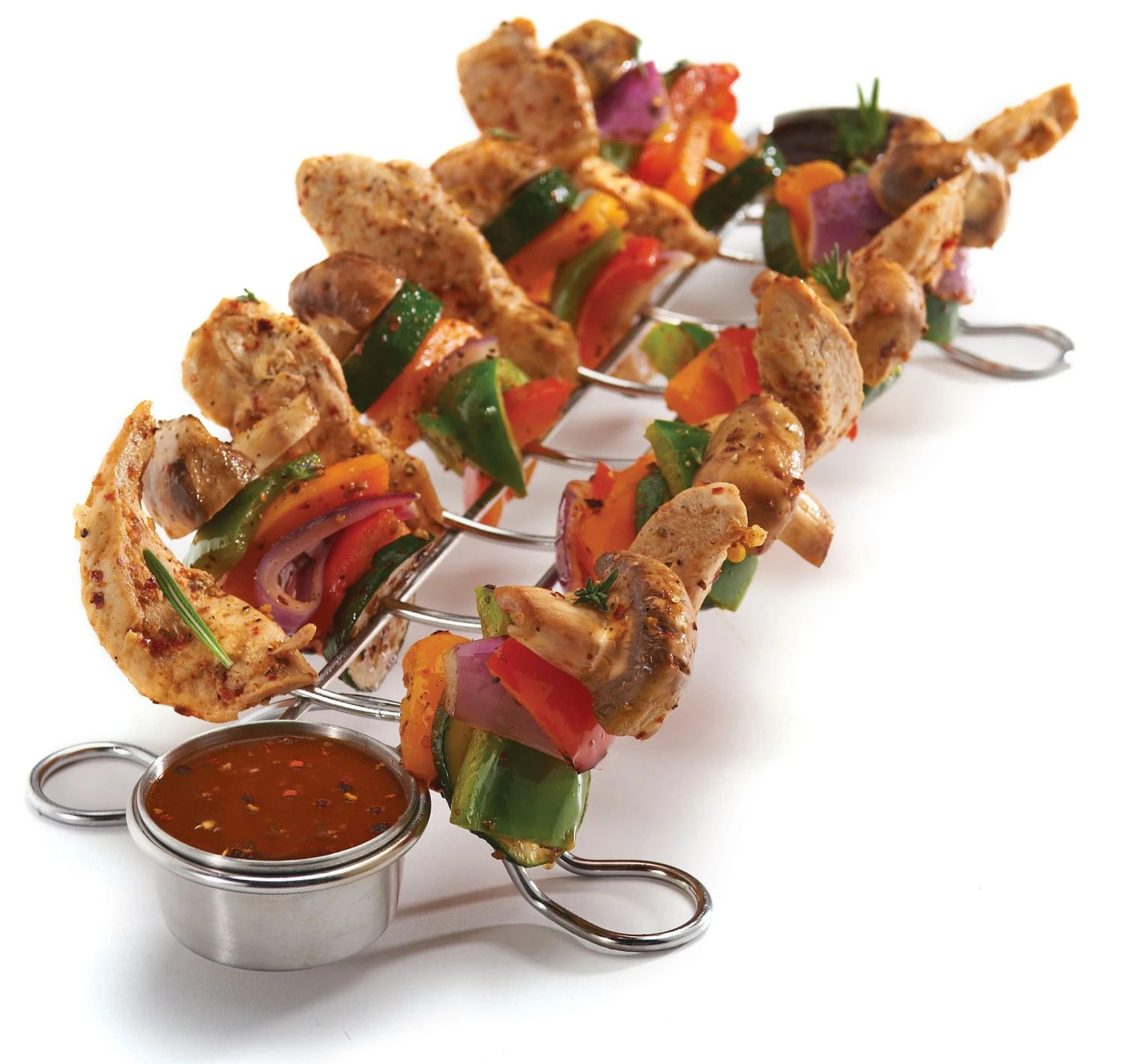 Seien Sie kreativ und zaubern leckere Spießkreationen. Das tolle Servier und Spießgestell von Broil King ist aus Edelstahl gefertigt und lässt sich dadurch besonders leicht reinigen.