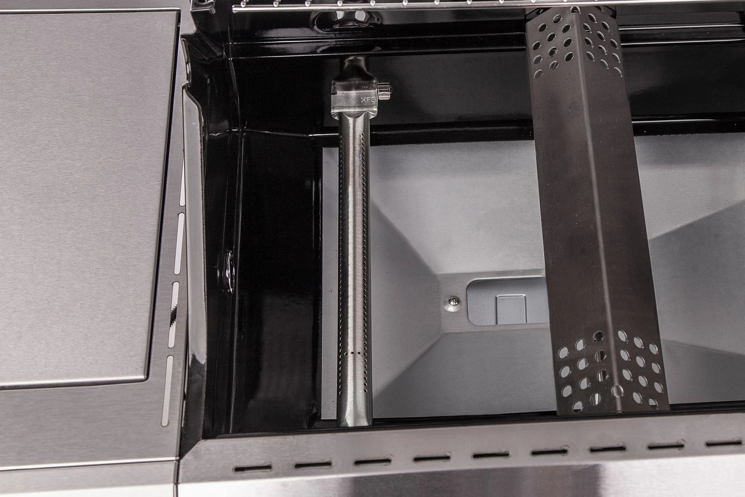 Als leistungsstarkes Herzstück für die Outdoor Küche bietet er neben 5 Edelstahl-Brennern einen zusätzlichen Infrarot Heckbrenner und jede Menge grandiose Highlights in Sachen Ausstattung und Komfort.