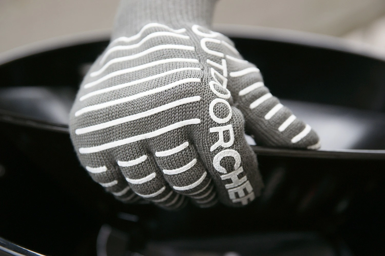 Der silikonbeschichtete Fingerhandschuh von Outdoorchef schützt beim Grillen Ihre Hand sicher vor den Auswirkungen der Hitze. Ob Sie den Easy Flip oder Easy Slide drehen oder nur den Grillrost neu positionieren wollen: der Grillhandschuh aus einer Baumwoll- und Polyestermischung ist hierfür die richtige Wahl.